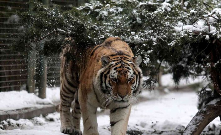 Bursa Hayvanat Bahçesi’nde soğuğu seven hayvanlar karın keyfini çıkarıyor.