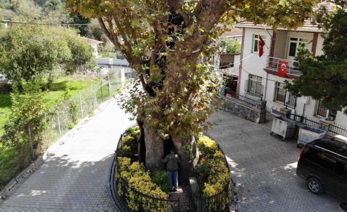Öte yandan neredeyse 8 asırlık olan ’işkence ağacı’ Kabakoz Çınarı havadan görüntülendi.