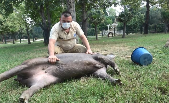 Hayvanat Bahçesi’nin Brezilyadan gelen sakinleri tapirler ise, bakıcılarının elinden karpuz keyfinin ardından masajları ile gülümsetti.
