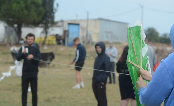 Erasmus projesi ile Balıkesir’e gelen yabancı öğrenciler, Manyas Gölü’nde kirliliğe dikkat çekmek için uçurtma uçurdu.