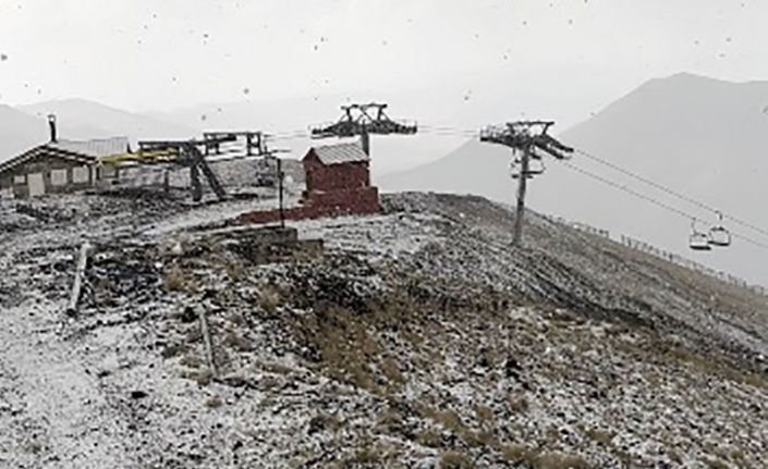 Erzurum’da yaklaşık 3200 metre rakımlı Palandöken Dağı’nın zirvesi Ejder Tepesi’ne mevsimin ilk karının yağması beklenirken, dolu sürprizi yaşandı.
