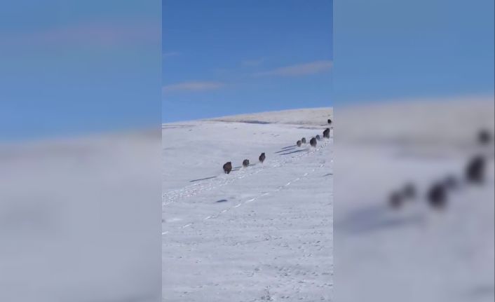 Ağrı’nın Patnos ilçesinde yol kenarındaki domuz sürüsü cep telefonu ile görüntülendi.