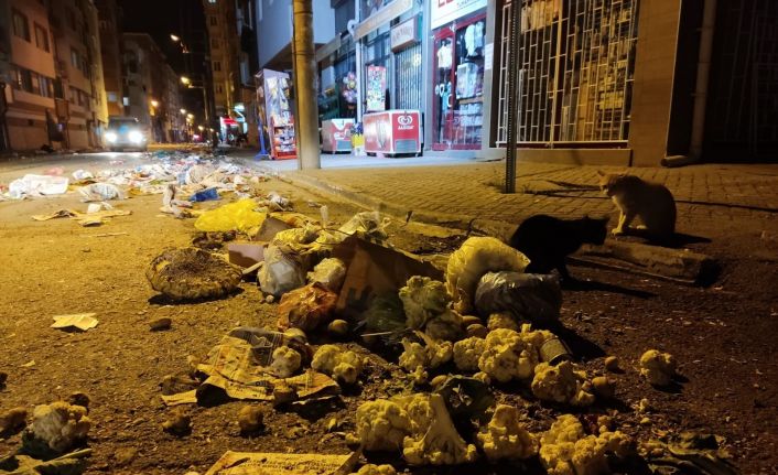 Eskişehir’de Cuma pazarının ardından geriye bırakılan meyve, sebze artıkları ve çöpler çirkin görüntüler oluşturdu.