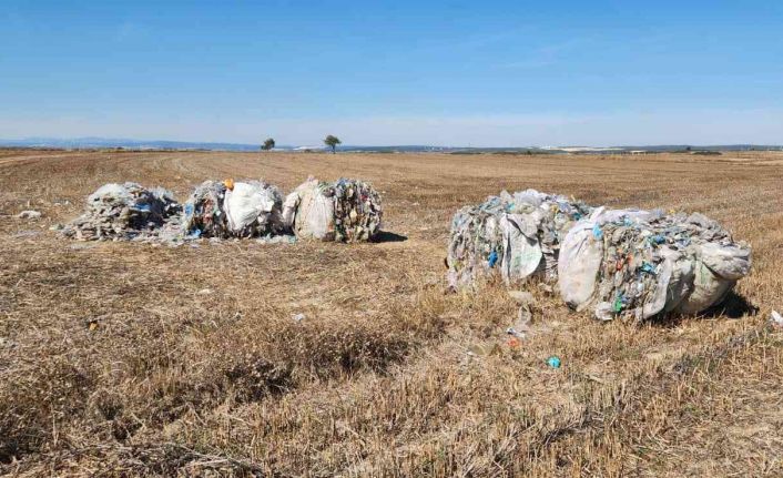 Tekirdağ’ın Saray ilçesinde bir tarlaya onlarca kiloluk plastik atık bırakıldı.