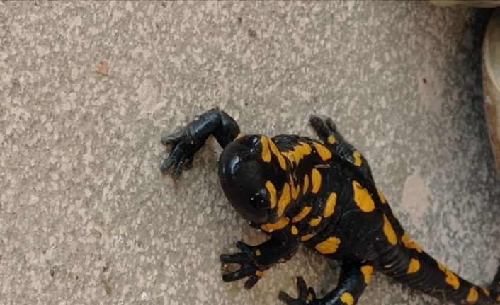 İnternette araştırdığında sürüngenin sarı benekli Anadolu semenderi olduğunu öğrenen Adak, nesli tehdit altında olan semenderi yetkililere teslim edeceğini söyledi.