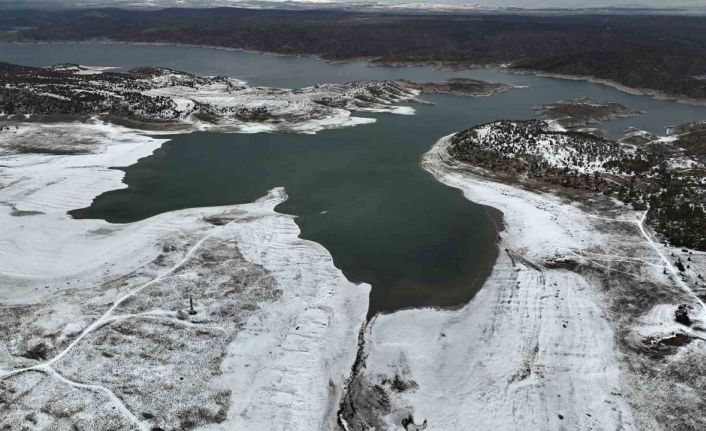 Eskişehir’in içme ve kullanma suyunu temin eden Porsuk Barajı’nın karla kaplı hali dron ile havadan görüntülendi. Kış ayına rağmen 8 ay önceki halinden daha da geriye çekilen su, kuraklık açısından tedirgin etti.