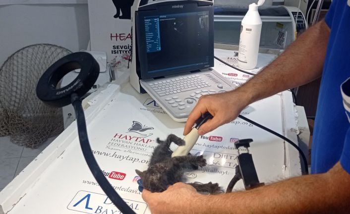 Kedinin sağlık durumuyla ilgili veren Veteriner Hekim Ali Laçinbala, “Bu yavruyu poşet içerisine bağlayıp atmışlar. Çocuklar okuldan gelirken, çalılıklardan bir ses duymuşlar ve ardından poşeti fark etmişler. Poşetin içerisinden çıkartıldığında kedi kan ter içerisindeydi. Bu canlıların ter bezi yok ve bu kedimizin de kan ter içinde kalmasının tek sebebi saatlerce 40 derece sıcaklıkta nefes yoluyla kapalı alana maruz kalması gerekiyor. Allah’tan çok uzun bir süre poşet içerisinde kalmamış, çok şükür kurtardık. Bir aylık erkek bir kedimiz. HAYTAP Tedavi Merkezi olarak sahiplendik, artık bizim himayemizde. Şu anda sağlık durumu iyi. Ultrason cihazı ile yapmış olduğumuz muayene sonrasında böbreklerinde de bir problem yok. Erken müdahaleden dolayı bu canımız kurtuldu” diye konuştu.