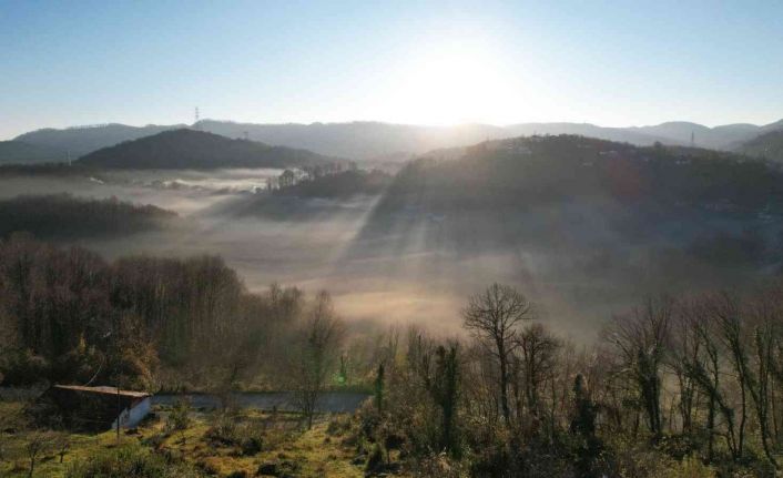 Kış mevsiminde yapraklarını döken ağaçlar, pus ve güneşle birlikte kartpostallık bir manzara oluşturdu. Sabahın erken saatlerinde oluşan pus, dron ile havadan görüntülendi. Puslu havaya havaların soğumasıyla birlikte yanan sobaların dumanları da eklendi.