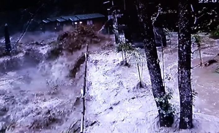 Rize’de 22 Temmuz Perşembe günü meydana gelen sel ve heyelan anı güvenlik kamerasına yansıdı.