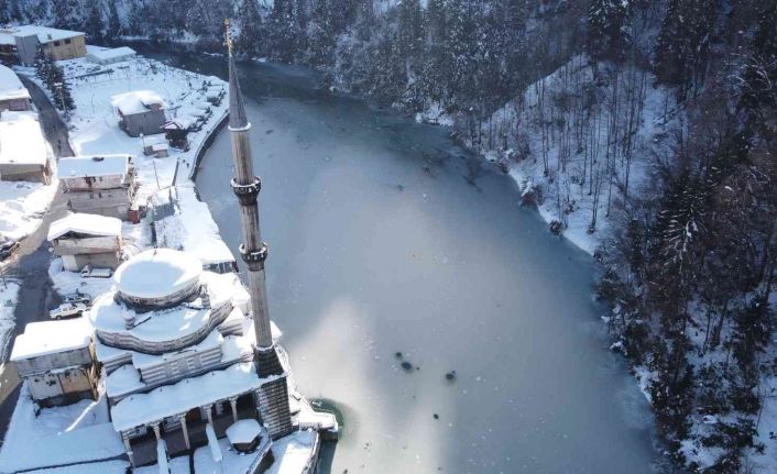 Kar yağışı ile Rize’nin Hemşin ilçesinde kartpostallık görüntüler oluştu.