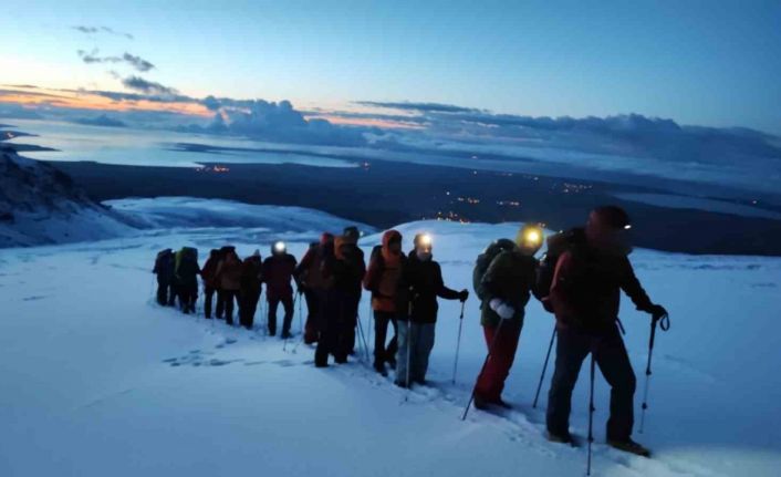 Bitlis’in Adilcevaz ilçesindeki Süphan Dağı’na tırmanışa geçen 17 Rus dağcı, yoğun kar ve tipi nedeniyle zirveye 200 metre kala geri dönmek zorunda kaldı.
