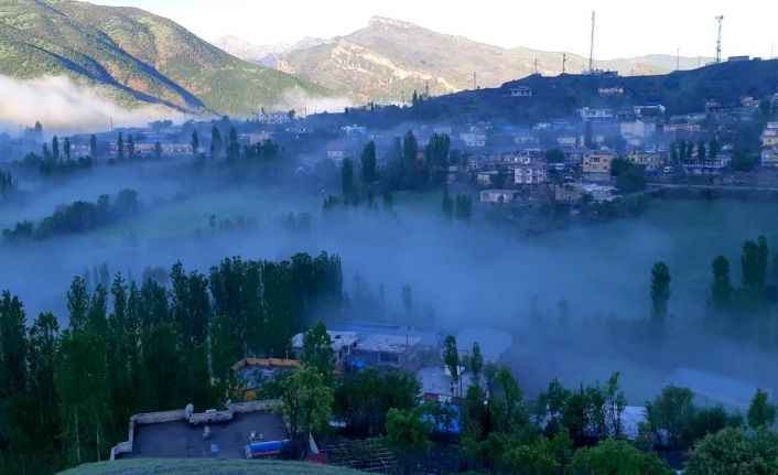 Şırnak’ın Uludere ilçesine bağlı Hilal beldesinde etkili olan sisin, beldedeki evler, dağlar ve ormanları kaplaması güzel görüntüler oluşturdu.