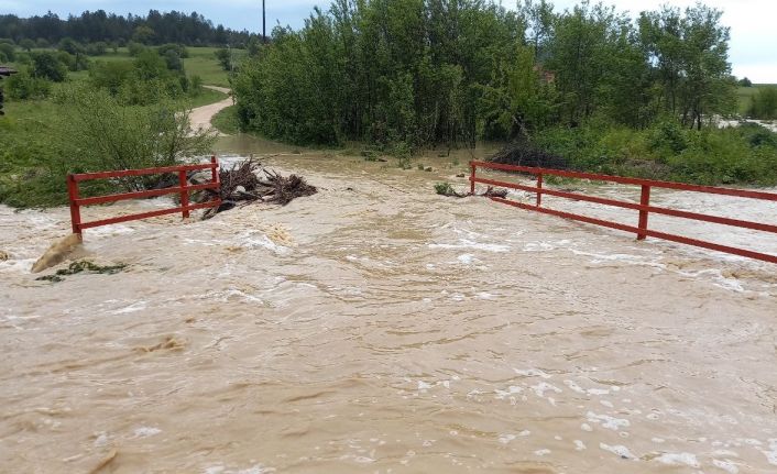 Öte yandan Karagöz Mahallesinde taşan dere nedeniyle köprü yıkılma tehlikesiyle karşı karşıya kaldı.