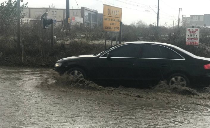 Sağanak yağmur sonrası yollar göle döndü