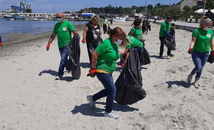 Dünya Çevre Günü kapsamında salya ile başı dertte olan Marmara Denizinin kıyısında çöp temizliği yapıldı.