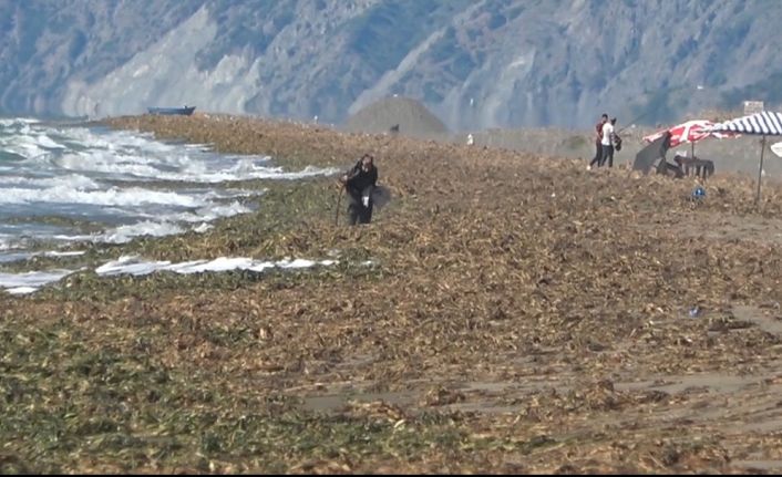 Samandağ sahilini kaplayan su canavarları için temizlik çalışması başlatıldı