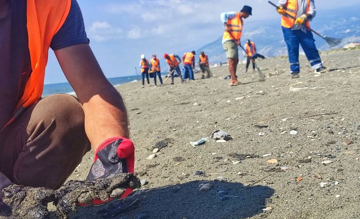 Hatay’da, Suriye kaynaklı petrol sızıntısının neden olduğu kirliliğe yönelik başlatılan temizlik çalışmaları devam ediyor.