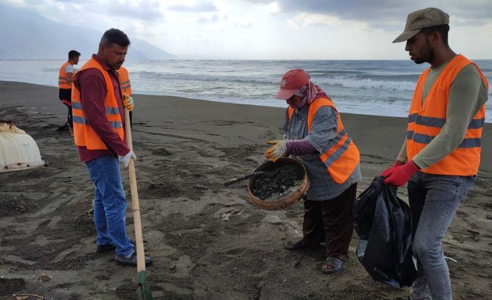 Suriye kaynaklı petrol sızıntısının neden olduğu kirliliğe yönelik başlatılan temizlik çalışmaları devam ediyor.