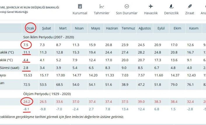 Son iklim periyodu verilerine göre Samsun’un Ocak ayı ortalama sıcaklığı 7,5 olarak kayıtlara geçerken, ortalama en yüksek sıcaklık değeri 11,1 olarak ölçüldü. Ocak ayı en düşük sıcaklık değeri 4,4 derece olarak belirtiliyor. Ölçüm periyodu raporlarına göre Samsun’da Ocak ayında ölçülen en yüksek sıcaklık değeri 24,2 derece ile 31 Ocak 2001 tarihinde ölçülmüştü. Ocak ayında ölçülen en düşük sıcaklık ise 13 Ocak 1950’de eksi 8,1 olarak kayıtlara geçmişti.