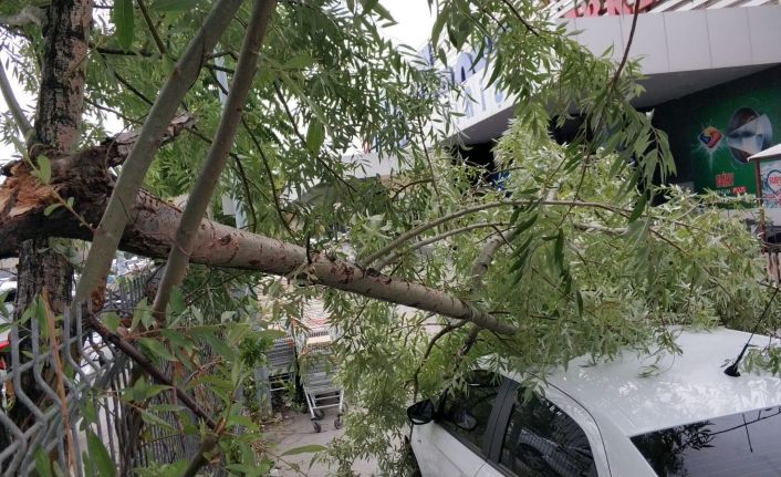 Samsun’da saatte 74 kilometre hıza ulaşan rüzgar nedeniyle bazı ağaçlar yıkıldı, araçlarda maddi hasar oluştu.