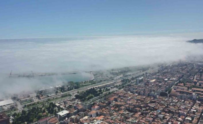 Samsun’da deniz suyu sıcaklığı ile hava sıcaklığının farklı olmasından dolayı sabah saatlerinde sis oluştu. Deniz tarafında oluşan oluşan sis havayı serinletti. Karadeniz’i ve sahilleri beyaz örtüyle kaplayan sis, dron ile havadan görüntülendi.