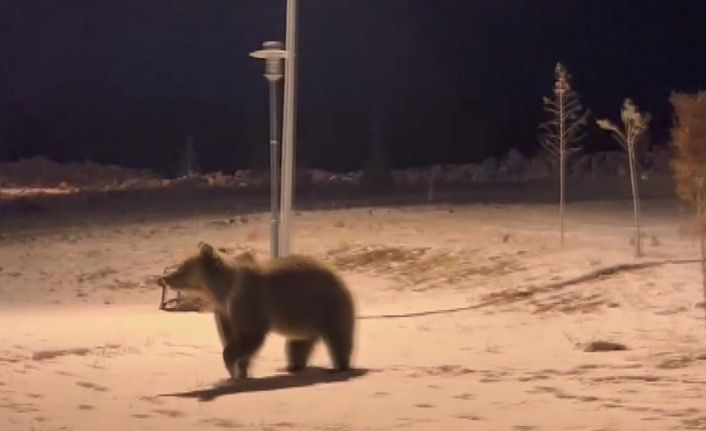Kars’ın Sarıkamış ilçesinde kış uykusundan uyanan ayılar, yiyecek bulmak için ilçe merkezinde bulunan TOKİ lojmanlarına kadar geldi.