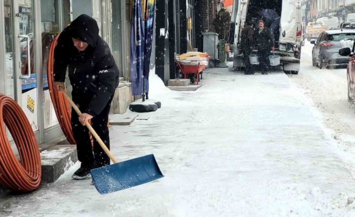 Gece saatlerinde başlayan kar yağışı sabah saatlerinde de devam etti. Belediye ekipleri ana arterlerde kar küreme ve tuzlama çalışmaları yaparken, esnaf ve vatandaşlar da iş yerlerinin önünü temizlemek için kürekleriyle yoğun çaba harcadı.