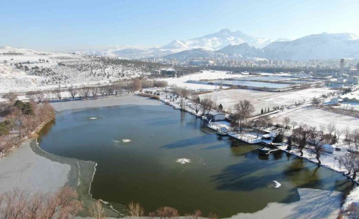 Kayseri’nin Kocasinan ilçesinde bulunan Şeker Gölü, yağan kar ile beraber güzel görüntüler oluşturdu.