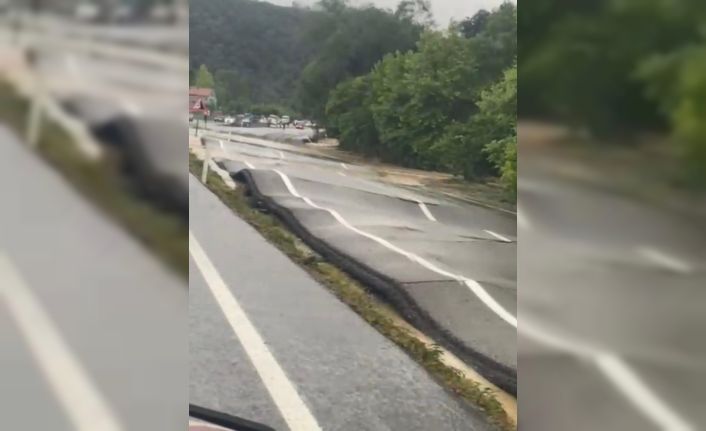 Zonguldak’ın Gökçebey ilçesinde sağanak yağış sonrası karayolunda çöküntü ve yarıklar oluştu.