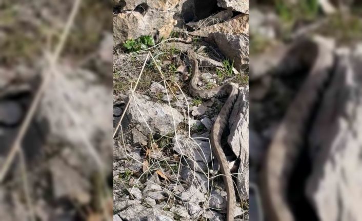 Hakkari’nin Şemdinli ilçesinde bir doğasever, kaya parçaları arasında süzülen engerek yılanını görüntüledi.