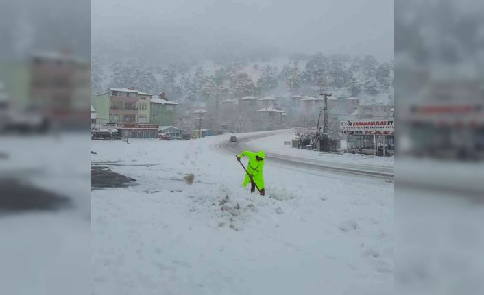 Karayolları ekipleri, yoldaki kar ve buzlanmayı önlemek için çalışmalarını aralıksız sürdürüyor.