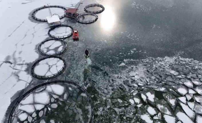 Erzincan’ın Tercan ilçesinde etkili olan soğuk hava hayatı olumsuz etkiliyor. Geceleri sıfırın altında 25 ila 30 dereceyi bulan soğuk hava nedeniyle Tercan Baraj Gölü’nün yüzeyi yaklaşık 20 santimetre buzla kaplandı. Barajda balıkçılık yapan vatandaşlar, buzları kırarak kafeslere ulaşmaya çalışıyor. Yıllar sonra ilk kez bu sene soğuk havanın bu kadar etkili olduğunu ifade eden ilçe sakinlerinden Alpaslan Cihan, "Bu sene felaket bir soğuk var. 6 yıl önce bir de bu şekilde hava soğumuştu. Tercan Baraj Gölü o zaman da bu şekilde buz tutmuştu. Geceleri eksi 27 derece, gündüz ise eksi 17-20 derece. Biz bu sene tilki çıkaran soğukları yaşıyoruz" dedi.
