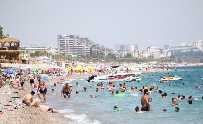 Antalya’da sıcak havayı fırsat bilenler sahile akın etti. 40 dereceye ulaşan sıcak hava sebebiyle Konyaaltı sahili adeta doldu taştı.