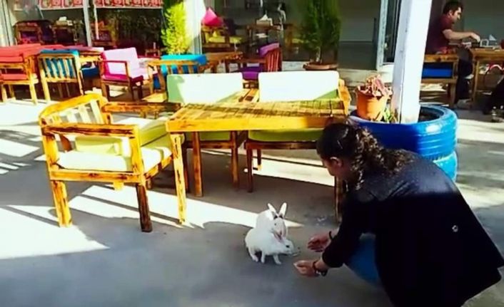 Siirt’in Eruh ilçesinde bir kafede masaları gezen yaban tavşanlarının, müşterilerin uzattığı dondurmalardan yemesi renkli görüntüler oluşturdu.