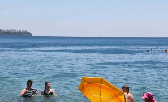 Turizm kenti Antalya’da kavurucu sıcaklıklar etkili olmaya devam ediyor. Hava sıcaklığının 35 dereceye yaklaştığı, nem oranının ise yüzde 14 ölçüldüğü kentte hafta sonu tatilini fırsat bilenlerin merkezi dünyaca ünlü Konyaaltı sahili oldu. Hınca hınç dolan sahilde vatandaşlar bir yandan Akdeniz’in serin sularında yüzerken diğer taraftan da sıcak kumsalın üzerinde şemsiye altında dinlenmenin keyfini sürdü.