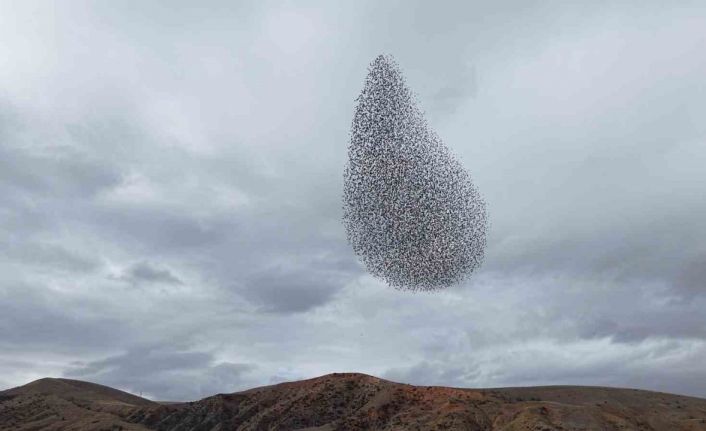 Kırıkkale’de sığırcık kuşlarının sürüler halinde gökyüzünde oluşturduğu şekiller ve ani dönüşlerle sergilediği hareketlilik, görsel şölen oluşturdu.