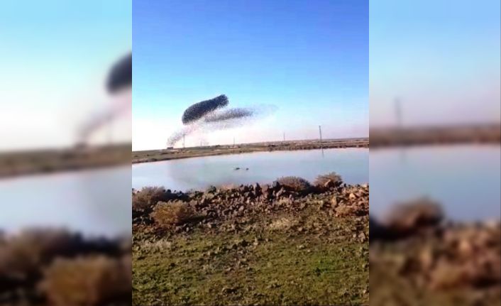 Diyarbakır’ın Çınar ilçesinde sığırcık sürüsü, gökyüzünde görsel şölen sundu. O anlar vatandaşların cep telefonu kameralarına yansıdı.