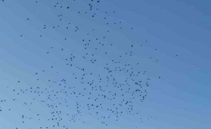 Van’da yüzlerce sığırcık kuşunun gökyüzündeki dansı, izleyenleri mest etti.