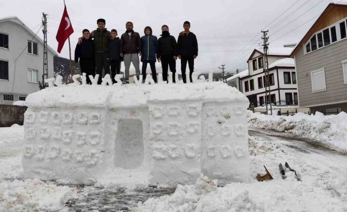 Sivas’ın Koyulhisar ilçesi Kızılelma köyünde Adem Soylu, Kız kulesine gidemeyen çocuklar için köyde kardan oluşturduğu kız kulesiyle gündeme gelirken, ayrı ekip bu kez tarihi Sivas Valiliği Binası’nın benzerini kardan yaptı.