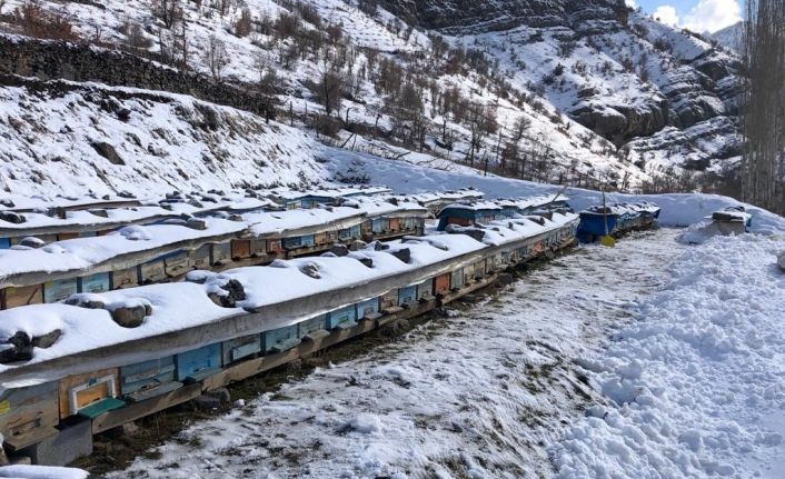 Şırnak’ın Beytüşşebap ilçesinde kar yağışıyla beraber bal arıları kış uykusuna yattı. Dondurucu havada dışarı çıkan arılar telef olmasın diye arıcıların kış mesaisi tekrar başladı.