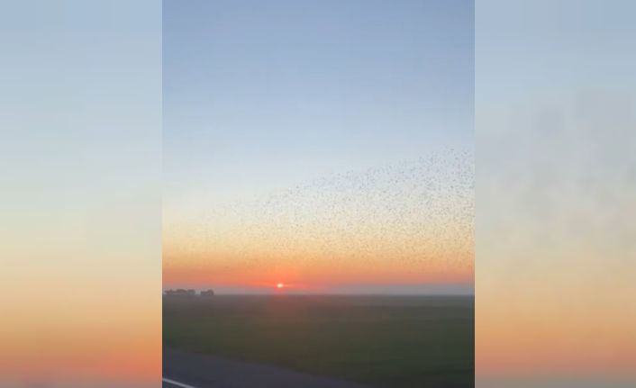 Şırnak’ın Cizre ilçesinde gün batımında binlerce kuşun kanat çırpması görsel şölen oluşturdu.