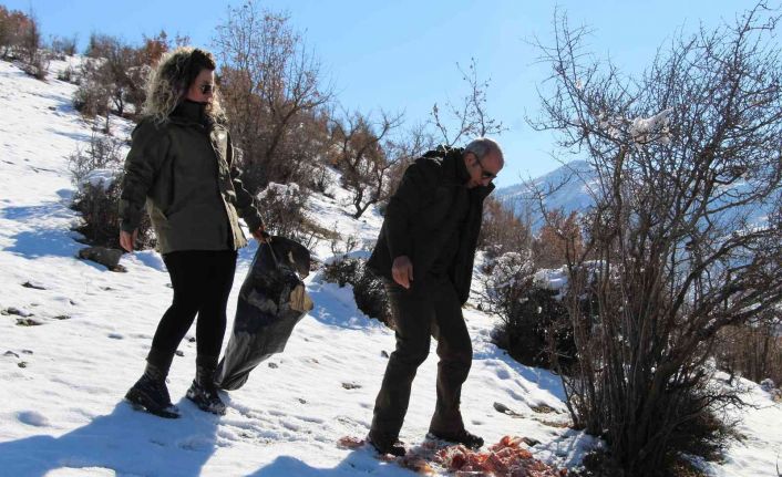 Şube Müdürü Kalay, Doğa Koruma ve Milli Parklar Şırnak Şube Müdürlüğü olarak her sene olduğu gibi bu senede yemleme çalışmasını yoğun kış şartlarına bağlı olarak başlattıklarını söyledi. Bu sene de kış mevsimi başlamasıyla beraber manavlardan, pazarlardan, fırın ve marketlerden toplamış oldukları atık yiyecekleri, kırık buğday, kırık arpa, ekmek, yeşillik, meyve ve sebze atıklarını yem bulmakta zorlanan yaban hayvanları için doğada belirli alanlara bıraktıklarını belirten Kalay, “Yaklaşık 3 ay boyunca yoğun kış şartlarının devam ettiği alanlara yemleme çalışmasını devam ettireceğiz. Amacımız yem bulmak için yaban hayvanlarımızın yerleşim alanlarına inmelerini engellemek. Bulundukları doğal ortamlarında yem bulmalarını sağlamak. Bıraktığımız yemleri genelde yırtıcı kuşlar, çakal, kurt, geyik ve tilki, kınalı keklik, tavşan ve yaban domuzu gibi yaban hayvanlarımız için yem bırakıyoruz” dedi.