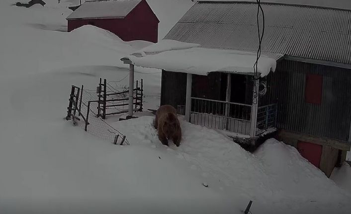 Trabzon ve Giresun sınırındaki 2 bin 200 rakımlı Sis Dağı Yaylası’nda, kış uykusundan uyanan dev bir ayı yayla evlerine dadandı. O anlar, bir yaylacının güvenlik kamerasına saniye saniye yansıdı.