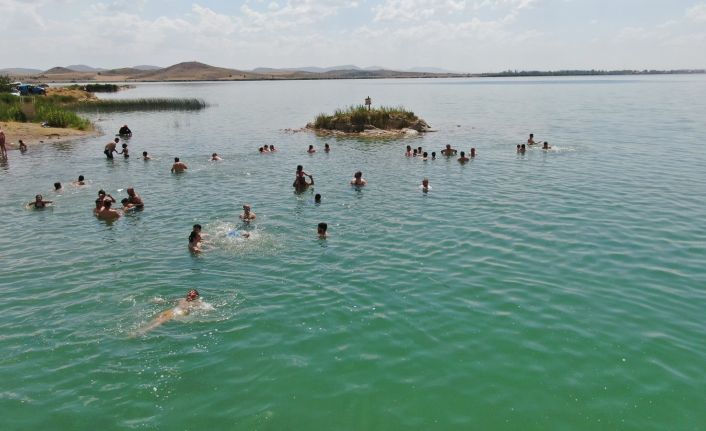 Sivas’ta kavurucu sıcaklarla birlikte serinlemek isteyenler Tödürge gölüne akın etti, ortaya Antalya plajlarını aratmayan görüntüler çıktı.