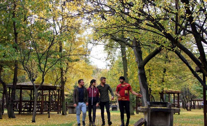 Sivas’ta Sonbahar mevsiminin gelmesiyle sarı, yeşil ve kırmızının tonlarını bürünen mesire alanında kartpostallık görüntüler oluştu.