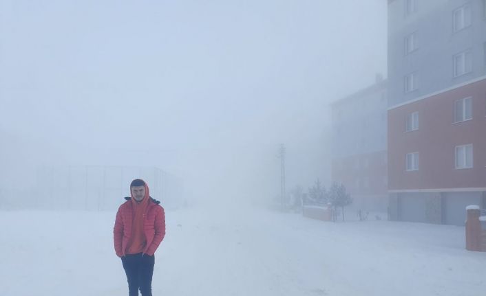 Sivas’ın Şarkışla ilçesinde etkili olan yoğun sis nedeniyle görüş mesafesi oldukça düşerken ilçede göz gözü görmedi.