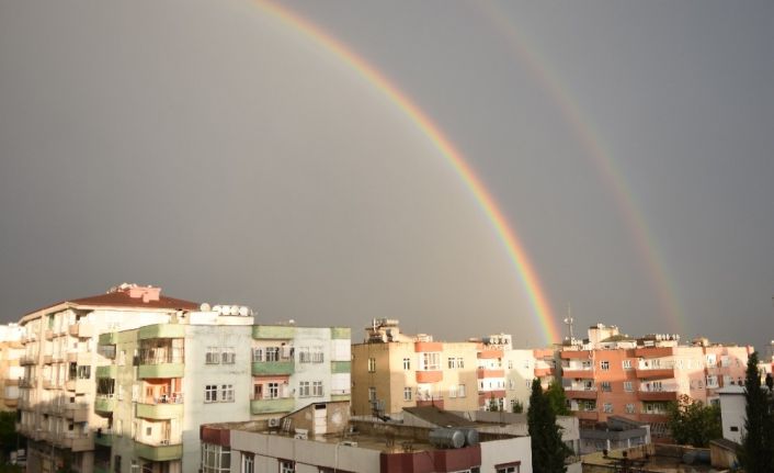 Şanlıurfa’nın Siverek ilçesinde öğle saatlerinde etkili olan sağanak yağış sonrasında gökkuşağı oluştu. Şehir merkezi semalarında iftar öncesinde ortaya çıkan gökkuşağı rengarenk görüntülere sahne oldu. Ortaya çıkan muhteşem manzarayı gören bazı vatandaşlar cep telefonu kameralarıyla gökkuşağını görüntüledi. Bazıları ise bina ve balkonlara çıkarak doyumsuz anları hayranlıkla izledi.