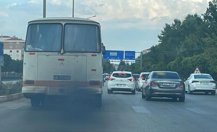 Eskişehir’de sürücüsünün her gaza bastığında arkasında yoğun bir siyah duman oluşturan eski model belediye otobüsü trafikteki sürücülerin tepkisine neden oldu.
