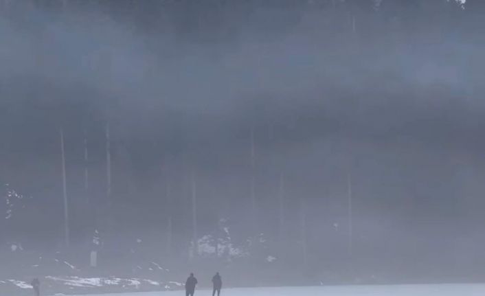 Karabük’te soğuk hava göletleri dondurdu, vatandaşlar tehlikeye rağmen üzerine çıkıp yürüyüş yaptı.