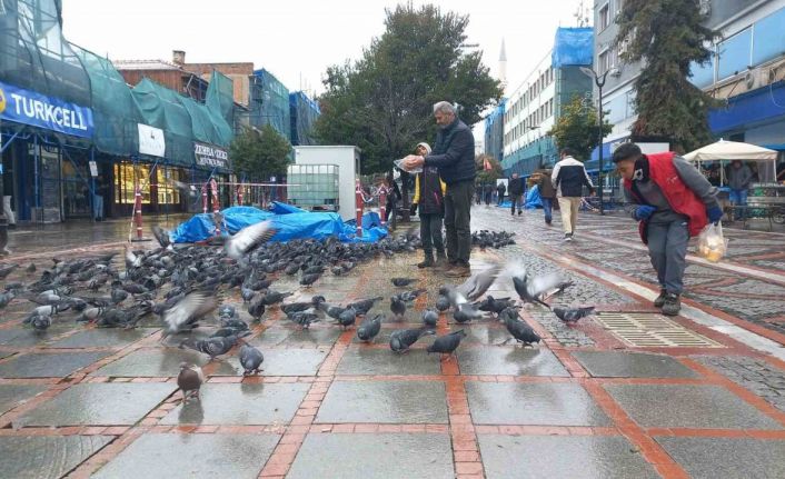 Edirne’de soğukta aç kalan güvercinlerin yardımına vatandaşlar yetişti.
